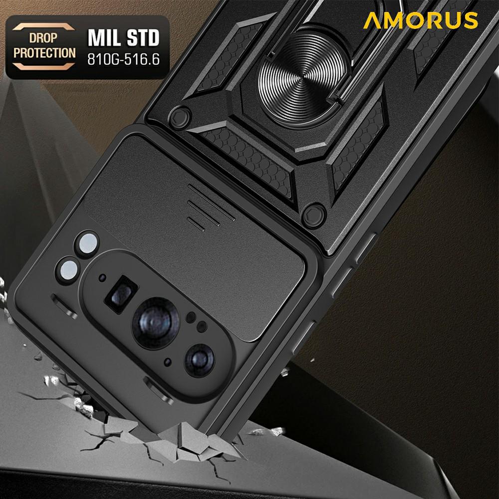 AMORUS Für Google Pixel 9 Pro XL Hülle Ständer PC+TPU Handyhülle mit Kameraobjektivschieber