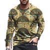 3D Antikes ägyptisches Muster bedrucktes Herren Freizeit T-Shirt mit Rundhalsausschnitt und langen Ärmeln