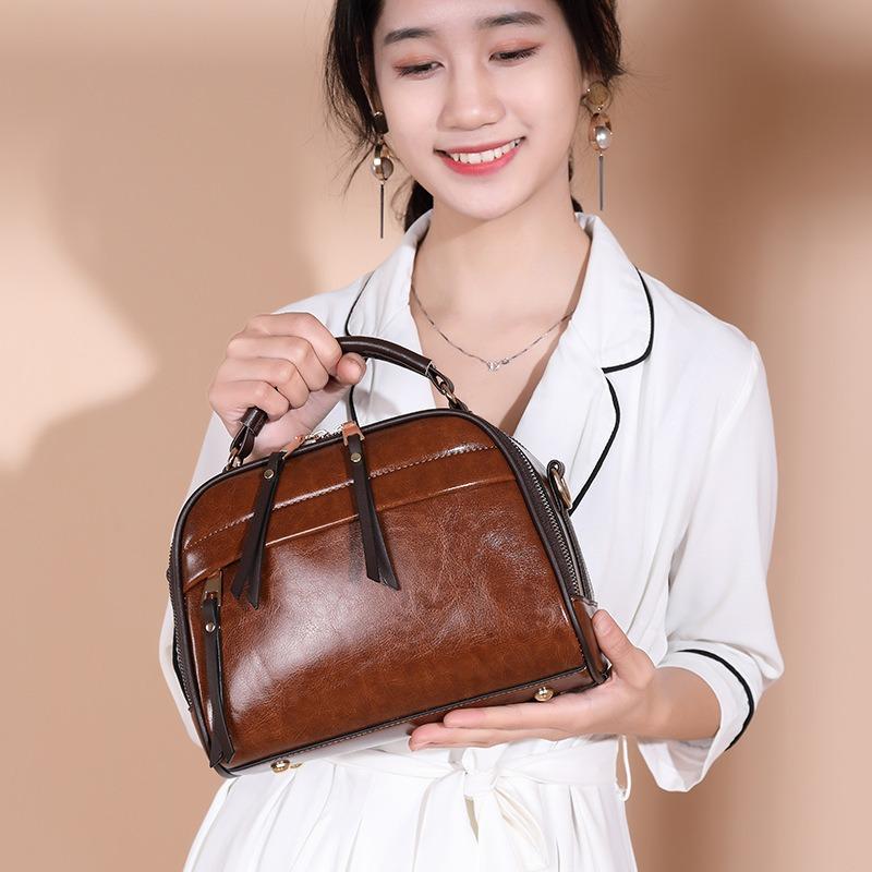 Herbst Damenhandtasche kleine Tasche neuer Trend vielseitig retro große Kapazität Ölwachsleder tragbar Schulter Umhängetasche