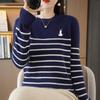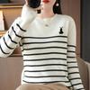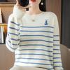 Herbst und Winter Neuer Pullover Damen Rundhals Gestreifter Strickpullover Basisschicht