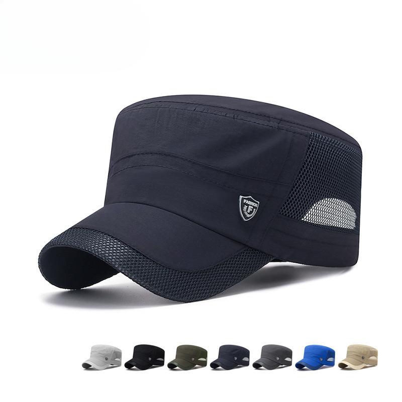 Herren Schnelltrocknende Hüte Sonnenschutz und Sonnenschutz Dünne Atmungsaktive Mesh Flat Top Hüte Frühling und Sommer Outdoor Baseballkappen