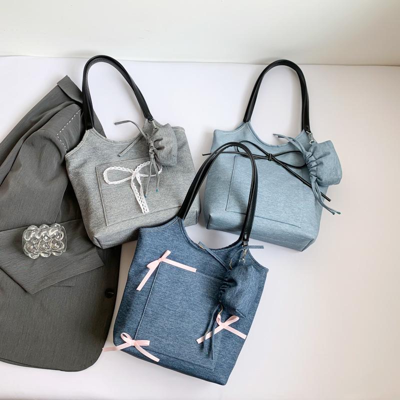 Casual tote bag New bow girl shoulder bag Fashion portable denim tote bag