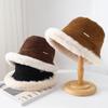 Autumn and winter velvet warm hat women's fashion bucket hat bucket hat big head circumference washbasin hat