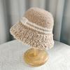 Herbst- und Winterplüsch warme winddichte Mütze Damen Splicing Strick Bucket Fischerhut zeigt kleines Gesicht vielseitiger Bucket Hat