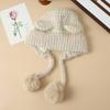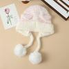 Korean Cute Colorful Bear Ear Wool Ball Cap Autumn and Winter Casual Cold Warm Hat Showing Face Small Knitted Wool Cap