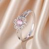 Niedliche hohle Blumenringe mit rosa Zirkonia für Damen, schlichte silberfarbene Hochzeits-Party-Schmuckgeschenke
