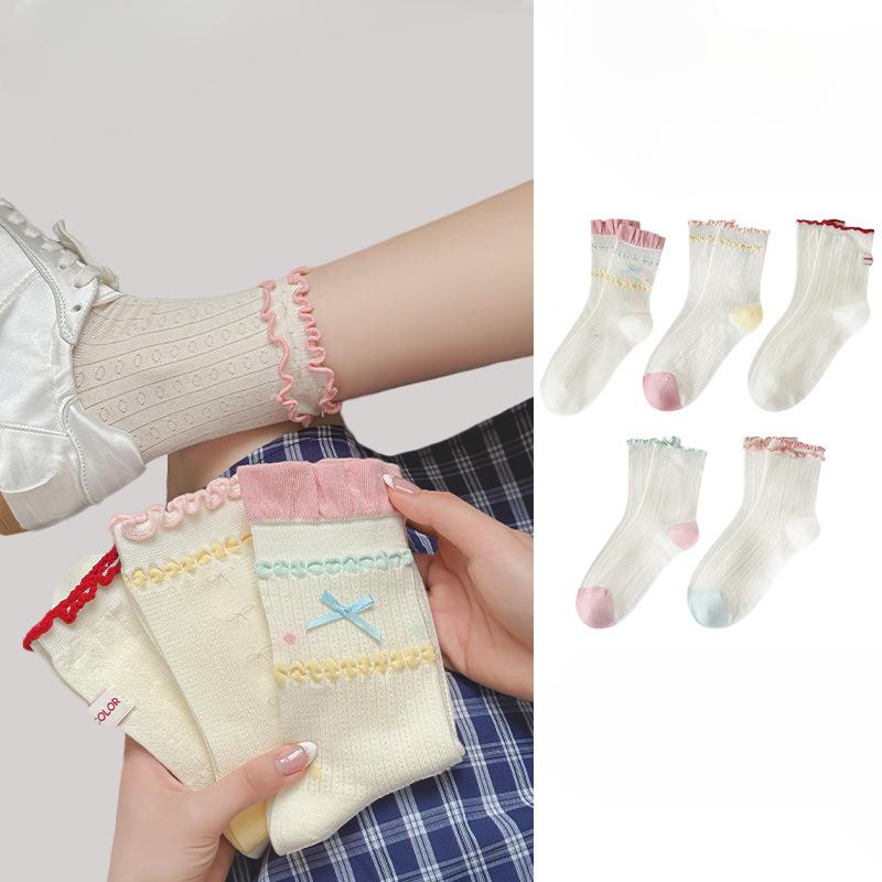 Female Spring and Summer Trend Lovely Bowknot Ear Edge All Build In Tube Cotton Socks