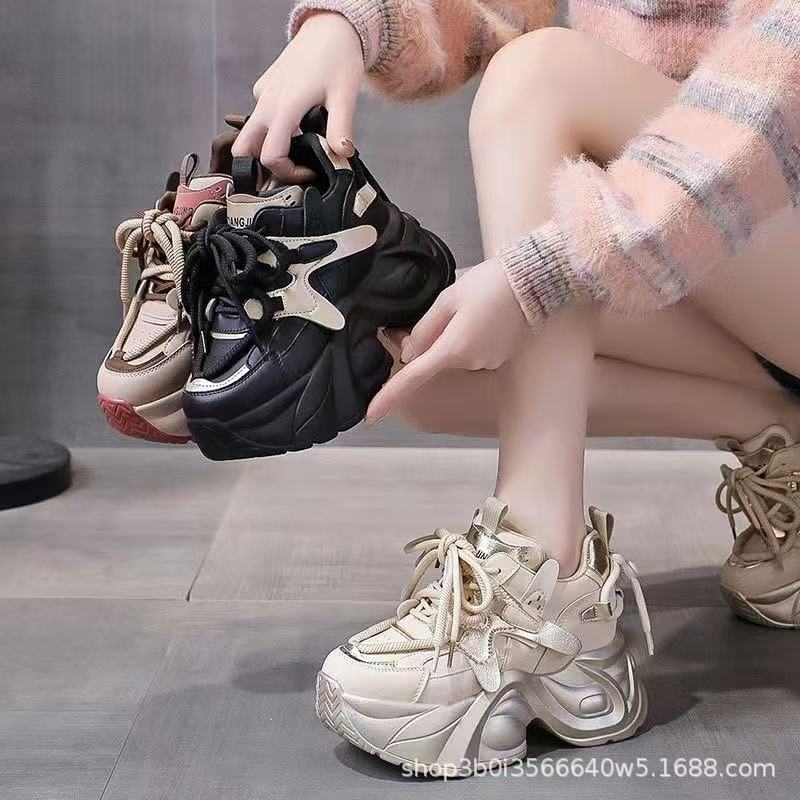 8CM Dad-Schuhe Damen ultraleicht 2025 Herbst neue vielseitige Freizeitschuhe dicksohlige kleine innenhöheserhöhende Damenschuhe