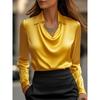 2025 Frühling Herbst Damen Bluse mit drapiertem Ausschnitt, Elegantes Hemd mit Schleife am Kragen, Lässige Passform, Minimalistisches Business Casual Oberteil für Arbeitskleidung