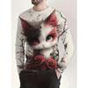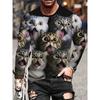 Spring and Autumn 3d Printed Cute Cat Pattern Long Sleeve Men's T-shirts Casual Clothing Animal Pattern Top