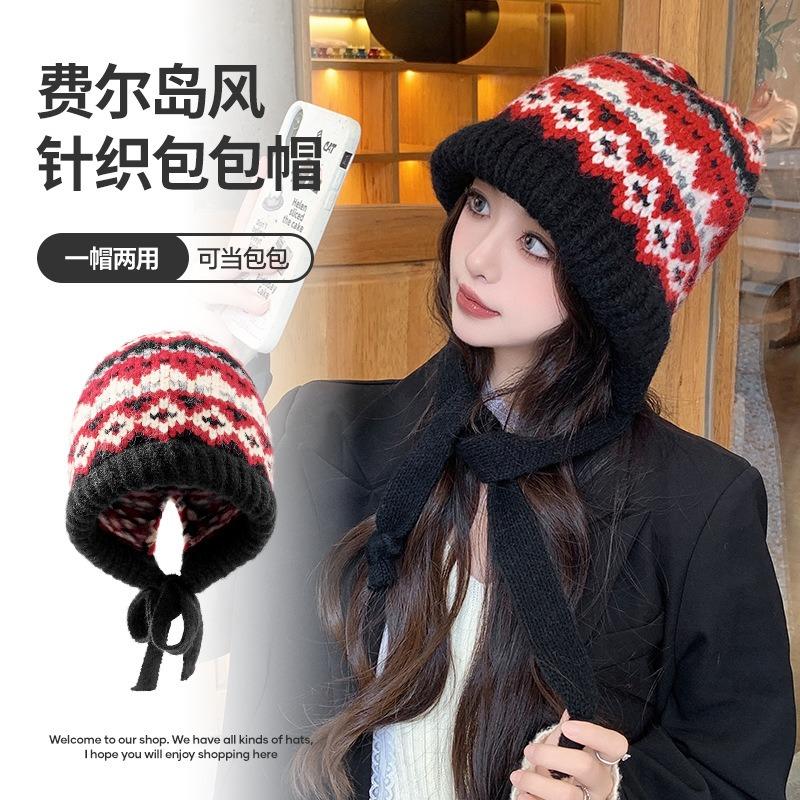 Autumn and winter hats women's warm ear protectors knitted wool hats retro dual-purpose bag hats