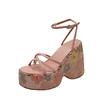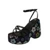 Mode Damen Sandalen Keilabsatz Bling Ein-Riemen Schnalle Blume Plateau Schuhe Kleid Schmaler Riemen Rutschfest Römisch 2025 Sandalias De Mujer