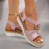 Mode Damen Keilsandalen Sommer Metall Dekoration Plateau Gladiator Schuhe Frau Komfort Lässig Mittelhohe Absätze Sandale Sandálias Feminina