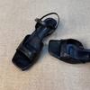 Mode Neuer Stil Mode Damen Vintage Ein-Wort-Schnalle Sandalen Damen Quadratische Zehen Flacher Ausschnitt Niedriger Absatz Nicht müde Füße Römerschuhe