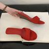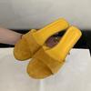 Mode Luxusmode Flock Damen Keilabsatz Hausschuhe Weibliche Pantoletten Sandalen Schuhe Runde Zehenpartie Schuhe Damen Absatz-Hausschuhe Keilabsatzschuhe