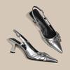 Mode 2025 Französischer Stil Gürtelschnalle Weinrote Sandalen Sommer Retro Lackleder Society-Temperament Spitz Schwarz Hohe Absätze