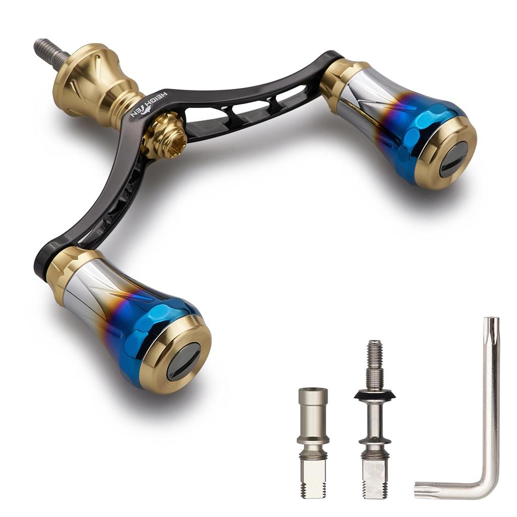 HEIGHTEN Reel Aviation Compatible with Shimano and Daiwa Spinning Arch Aurora Knob Black V3.0 80/98mm Handle, Aluminum, Reels, (Gold & Handle, 80mm)