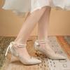 Mode Damen High Heels Schleife Feenstil Seidensatin Oberfläche Dicker Absatz Perlenkette Ein Riemen Schnalle Einzelner Schuh Modisch Vielseitig