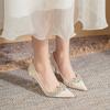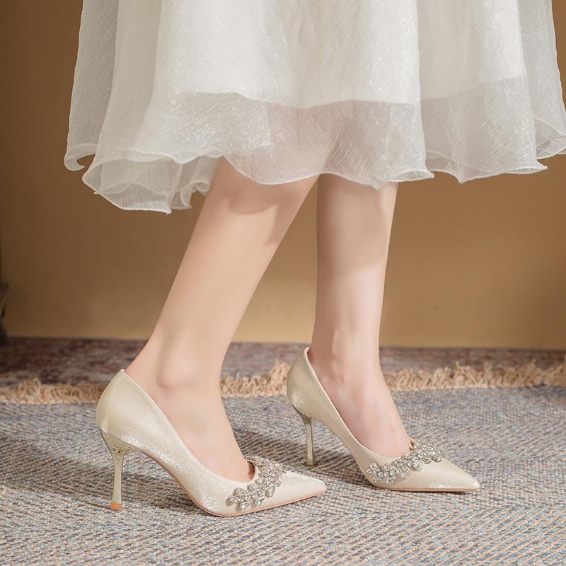 Mode 2025 Neue Größe Perlen Strass Dünne Hohe Absätze Damen Satin Sardine Spitz Stilettoabsatz Kleiderschuhe
