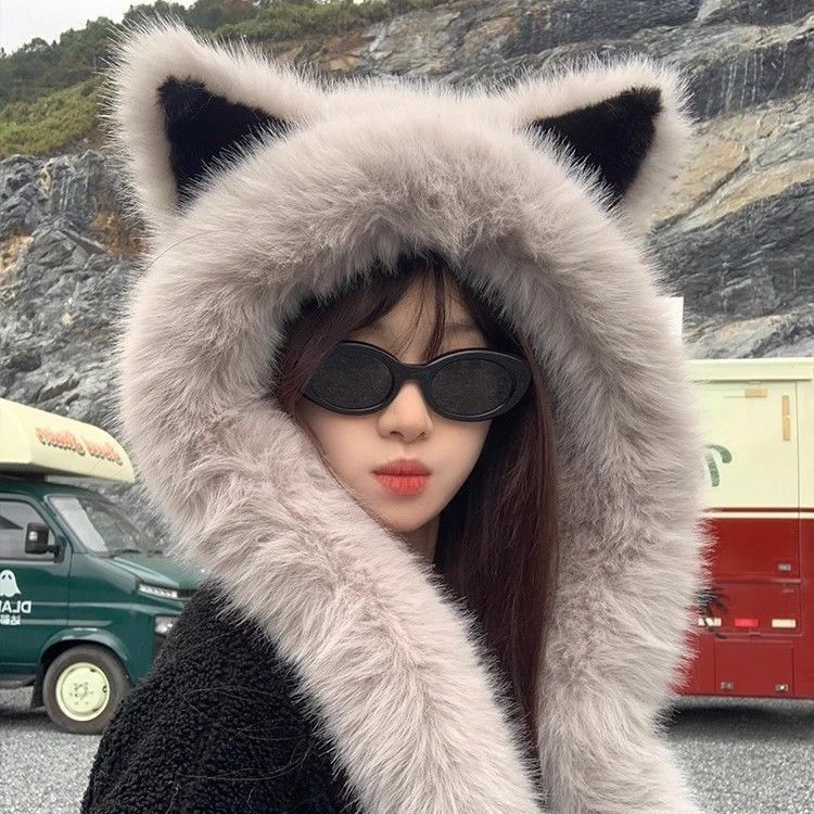 Neuer Pelzimitat Fuchshaar Vergrößerter Verdickter Hut Winter Flauschiger Hut Großer Kopf Schal Zum Warmhalten