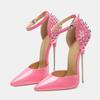 Mode Liyke Sexy Nieten Riemen Damen Pumps Schwarz Lackleder Spitze Zehen Fetisch Super Hohe Absätze Party Stripper Schuhe Größe 46