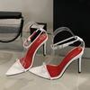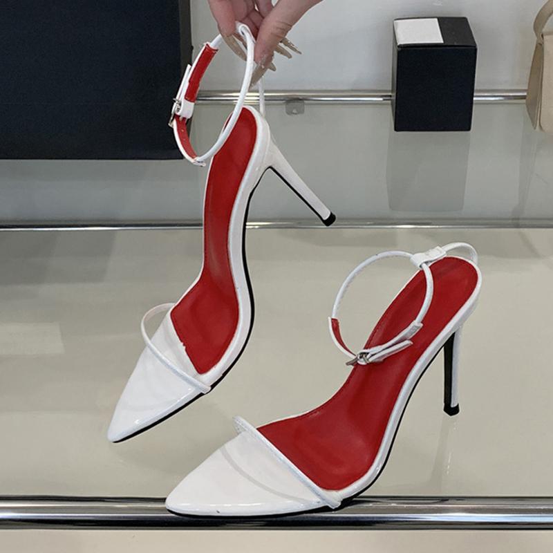 Fashion Liyke 2025 Sommer Mode Weißes Lackleder Knöchelriemen Sandalen Damen Sexy Spitz Offene Zehenpartie Stripper Absätze Hochzeit Ballschuhe