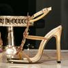 Mode Liyke Sommermode Kristall Strass Blume Knöchelriemen Gold Sandalen Damen Hochzeit Ballschuhe Sexy Eckige Zehenpartie Stripper Absätze