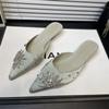 Mode Kristallabsatz Hausschuhe Damen Spitzschuhe Elegante Sandaletten mit Absatz 2025 Sommer Party Flip-Flops Neue Luxus Damenschuhe