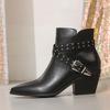 Fashion Liyke Punk Style Mode Nieten Schnalle Riemen Chelsea Stiefeletten Damen Niedrige Dicke Absätze Herbst Winter Schuhe Damen Reißverschluss Kurzer Stiefel