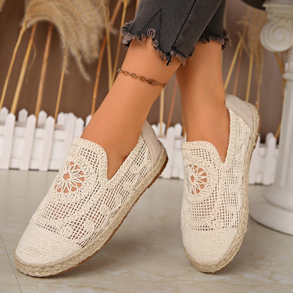 Modemarken Design Häkelspitze Espadrilles Damen Elegant Flach Leinen Netz Slipper Damen Sommer Atmungsaktive Fischer Mokassins Schuhe