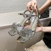 Mode Blume High Heels Damen Sandalen Elegante Schuhe Eckige Zehenpartie Slingback Sommer 2025 Trend Kleid Pumps Party Klobige Sandalen für Damen