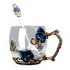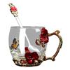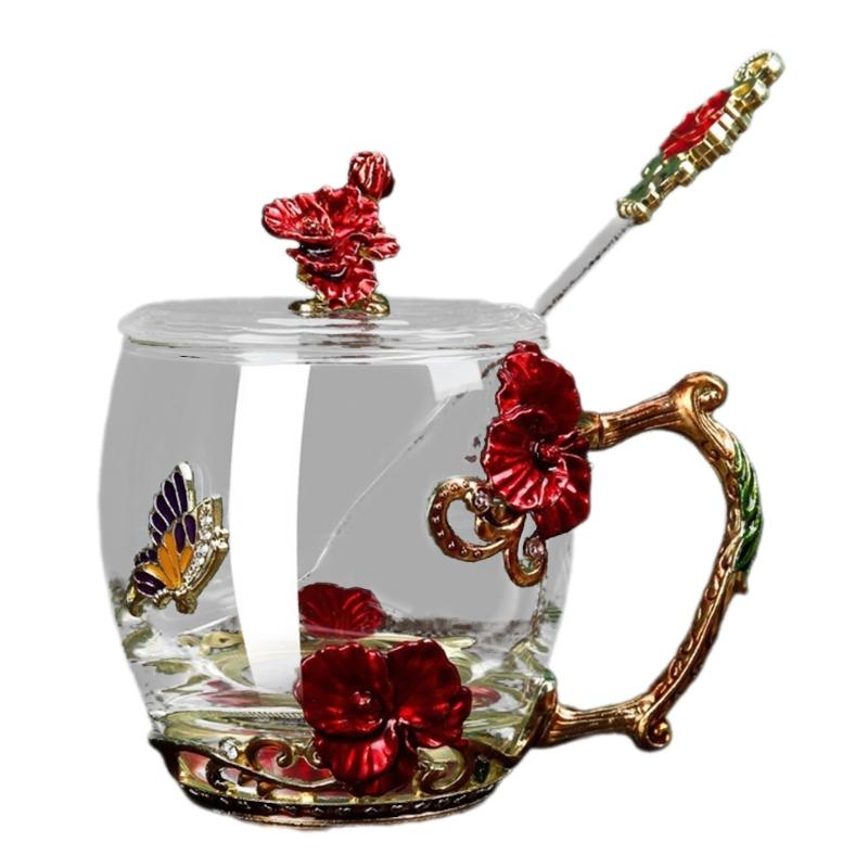 Praktisches Glas-Emaille-Tassen-Geschenkset Schmetterlinge Emaillierte Glastassen Blumen Verzierte Glas-Wasserbecher mit Löffel Dropshipping