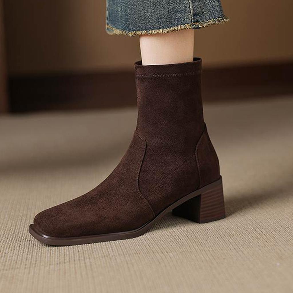 Krazing Pot Flock Round Toe Thick Heels Chelsea Boots Size 42 Zip Women Concise Style Elastic Ankle Boots