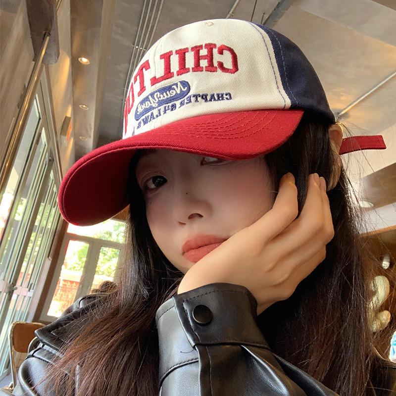 Color matching letter baseball cap women's retro versatile wide brim big face cap big head circumference showing face small hat