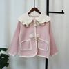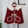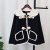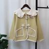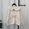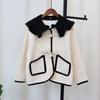 Removable collar horn buckle sweater jacket women's 2025 autumn and winter new sweet doll collar knitted double-sided woolen cardigan
