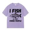 Ich fische, damit ich Leute nicht erwürge Lustiges Fisch-Meme T-Shirt Herren Retro Harajuku Kurzarm T-Shirts Unisex Sommer O-Ausschnitt Baumwoll-Tees