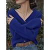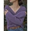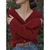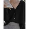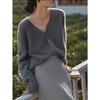Herbst und Winter neuer V-Ausschnitt Pullover Strickjacke Damenmantel lässiger Stil mit lockerem, weichem, wachsartigem Strickpullover
