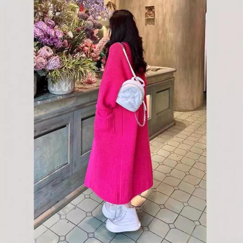 Lazy wind thickened large size sweater cardigan women's autumn and winter new loose medium and long knitted coat women