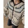 Premium Retro Jacquard Rundhals Strickjacke Damen Herbst und Winter Verdickt Einreihig Locker Fair Isle Pullover Jacke