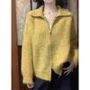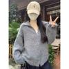 Loose lapel double zipper sweater jacket women's autumn and winter new lazy style thin knitted cardigan women