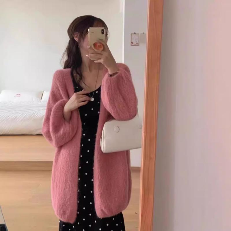 Lantern sleeves lazy wind sweater jacket women's autumn and winter soft waxy loose and thin versatile knitted cardigan women