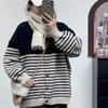 Lazy wind casual striped design knitted cardigan women's autumn and winter loose versatile crew neck sweater jacket