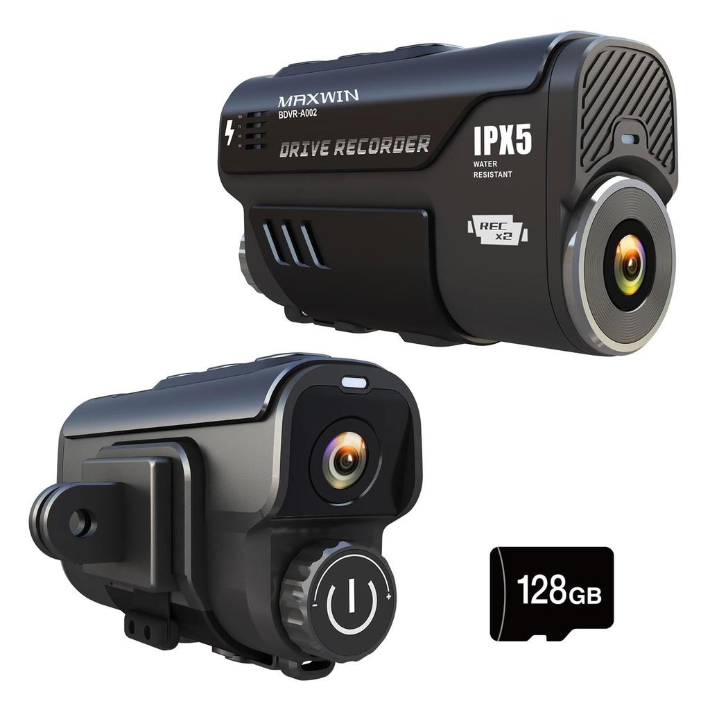 MAXWIN Motorcycle Dash Dual Front and Rear Simultaneous Helmet 4 Full IP65 Includes 128GB microSD Cam, Cameras, Recording, Mountable, GPS, WiFi,
