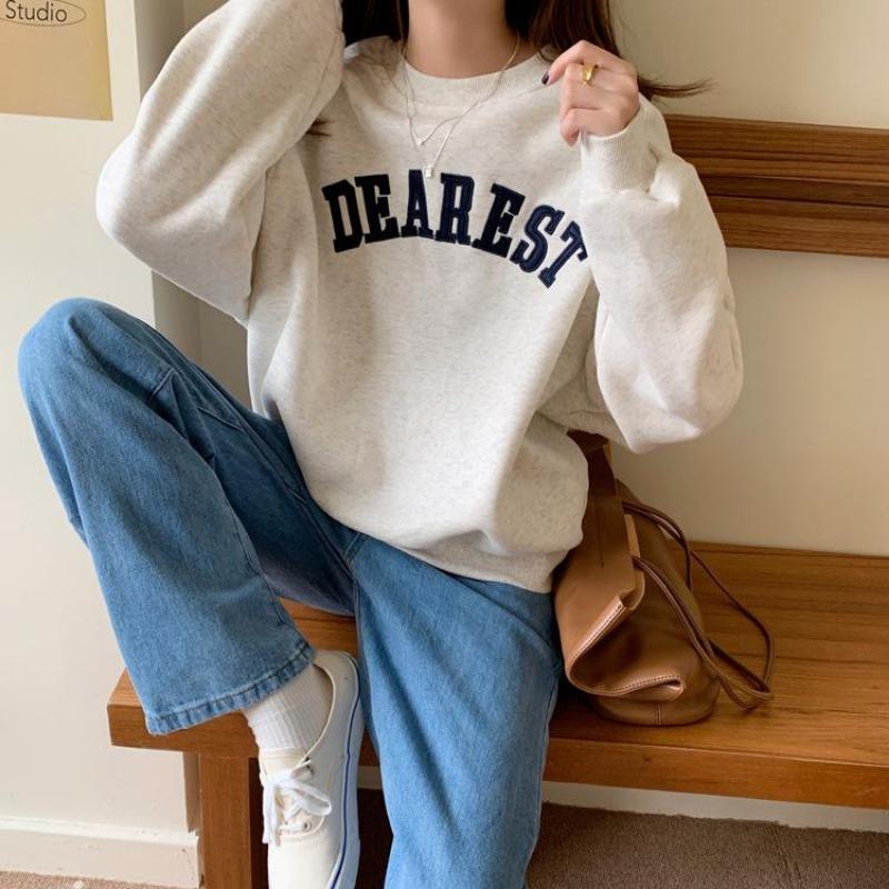 Frauen Langarm O Hals lose Pullover weibliche Tops einfarbig Sweatshirts