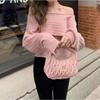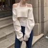 Design sense one-word neck sweater women's two-piece set autumn and winter new sexy off-the-shoulder temperament knitted sweater women