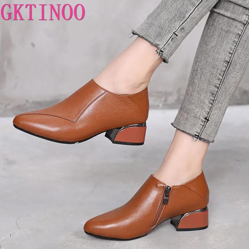 Mode GKTINOO Spitzschuh Mittelhohe Absätze Damen 2025 Herbst Einzelne Schuhe Frau Weicher Echtlederschuh Quadratischer Absatz Weiblich Seitenreißverschluss