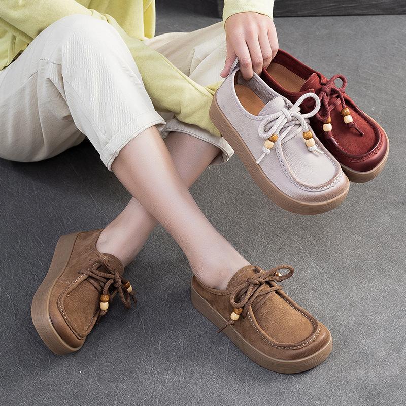Mode Frühling Herbst echtes Leder Freizeitschuhe Damen weiche Sohle Mama tiefer Ausschnitt handgefertigt Retro quadratische Zehenpartie Damenschuhe