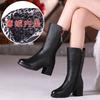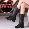 Mode GKTINOO Damen Mid-Calf Stiefel Winter Warm Seitenreißverschluss High Heel Stiefeletten Echtes Leder Plateau Mutter Schuhe Damenschuhe