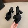 Modisches wasserdichtes Design High Heel Slipper 2025 Sommer Neu Damen Quadratische Zehen Offene Zehen Schleifen Modisch Elegant Outdoor Party Sandalen