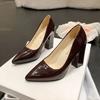 Fashion Square Heels Pumps Damen Schuhe Lackleder Sexy Hochzeit Party Offizielle Freizeit Super Big Szie 2024